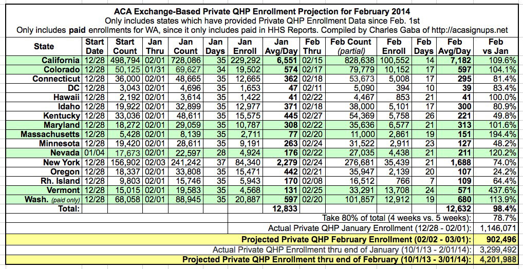 --I'm not including the (admittedly few) SHOP Small Business enrollments, which really should be included since they're part of the ACA exchanges.