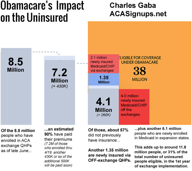 I should also note that an extensive survey by the Commonwealth Fund released just a few days ago confirms that about 5.7 million of those enrolled in ACA exchange policies this year (2015) are newly insured...which, again, doesn't include Medicaid, CHIP, or off-exchange enrollees.