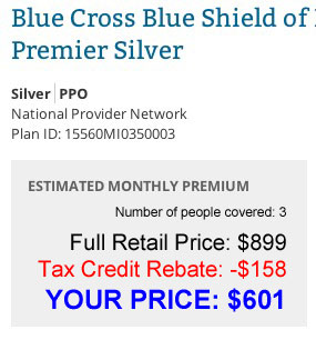 See what I mean? You're still drawing their eye to their actual price (thus avoiding sticker shock for those on a tight budget), but are making crystal clear that there's a reason why they're enrolling through the ACA exchange instead of directly through Blue Cross, Humana or whatever.