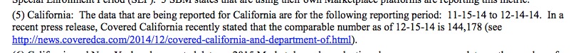 See that second line? The HC.gov data runs from 11/15 - 12/15...but the state-based data (with the exception of California) only runs through December 13th, not the 15th.