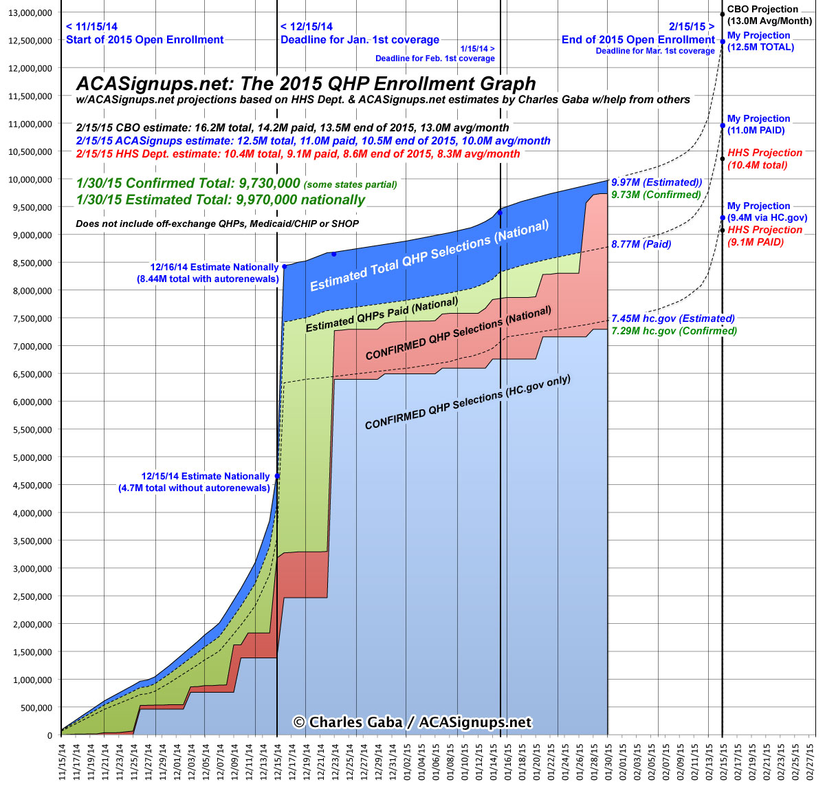 Of that 12.5 million, I'm expecting roughly 9.4 million of it to be via the federal exchange (HC.gov), plus another 3.1 million via the state exchanges (although given the recent trends of the state-run exchanges underperforming while the states on the federal one are overperforming, the ratio may be more like 9.6M to 2.9M).