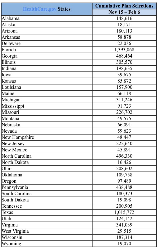 Here's the last state-by-state breakdown before the Final Surge (again, I highly doubt that they'll bother issuing a 13th "weekly snapshot" when that would only leave the final 2 days of the enrollment period out):