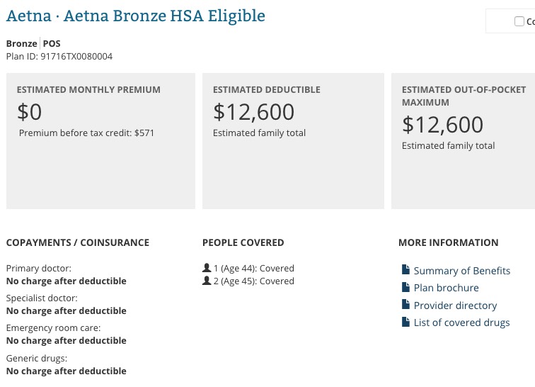 Again, this may seem like a way for this hypothetical couple to "scam" the government out of $7,100 a year...but when they actually try to select a plan, look at what happens: