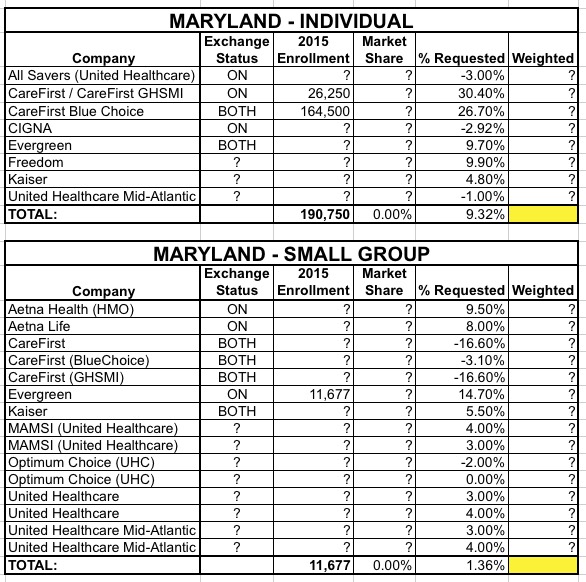 Kaiser Permanante is the 2nd largest insurer on the MD exchange with 15% of the enrollees and is only asking for a 4.8% increase...but again, I have no idea what their off-exchange enrollment is.