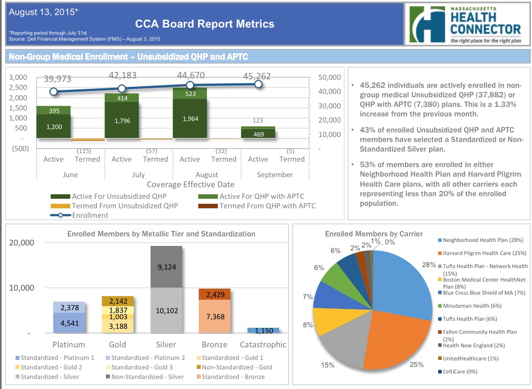 The Massachusetts Health Connector just held their monthly board meeting this morning, and have released the July dashboard report with a whole mess of demographic data for Baystate-obsessed nerds to revel in.