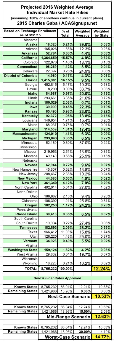 (near) Final Projection: National 2016 Weighted Avg. Rate Hikes to be between 11-15%