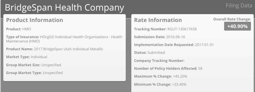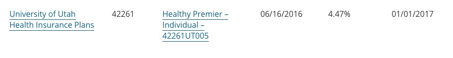 This leaves around 93K unaccounted for. Some of them are presumably enrolled via University of Utah plans; U of U's enrollment numbers are redacted, and while the Utah site claims a 0% rate hike, the RR.HC.gov database lists it as 4.47%.