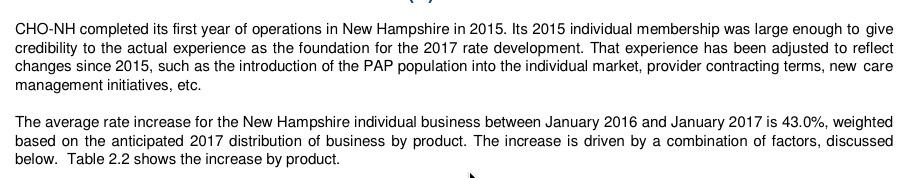 Finally, for Minuteman Health, the average request was also questionable, since there are 6 different filings ranging from 25-60%. Without knowing the breakdown between the 6, I had to run a simple average to get 30.7%.