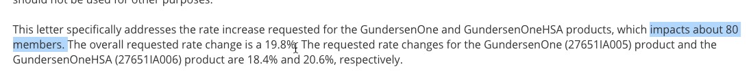 And finally, Wellmark's filing, which claims that their 38% rate hike will only impact around 7,800 current enrollees...as opposed to the 30,000 noted in the article: