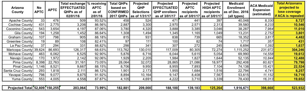Arizona: Here's the ~524,000 residents who could lose coverage, by county (CORRECTED)