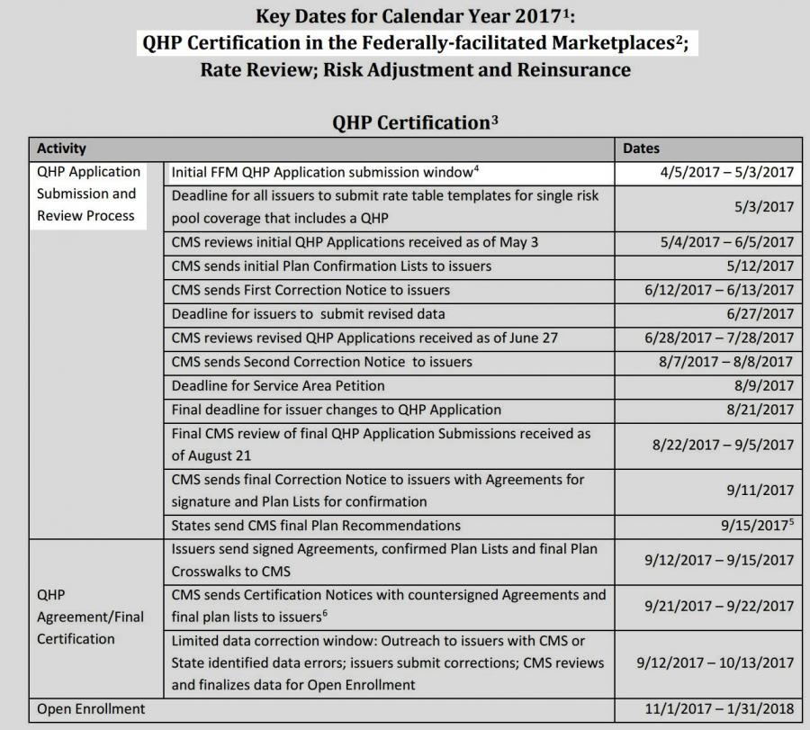 And for the record, here's the official timeline for carrier participation on the federal exchange (I presume the dates are a bit different for the various state-based exchanges, but we're still talking about just a few months here):