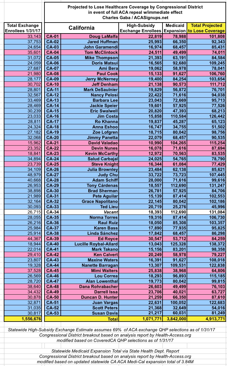 Unfortunately, due to the sheer amount of time it would take to do so, and the fact that the House is voting on the AHCA tomorrow (Thursday, 3/23), I don't have time to completely update/overhaul the Google Docs version of this data.