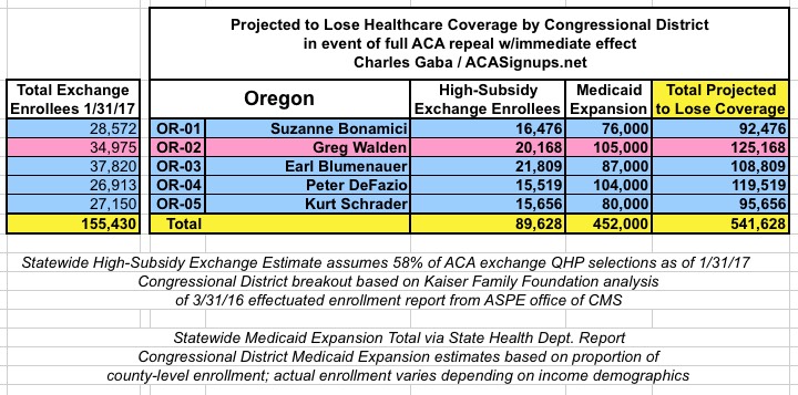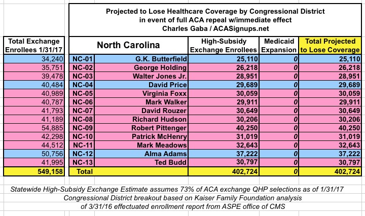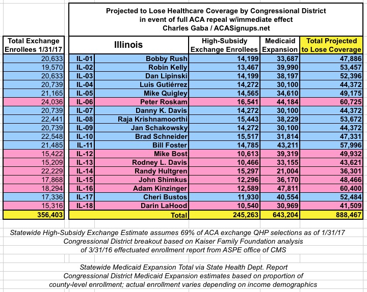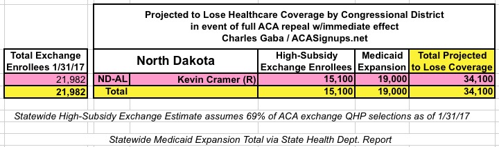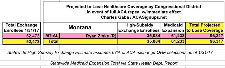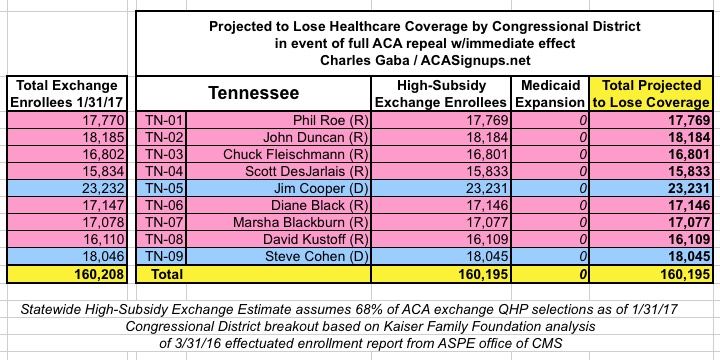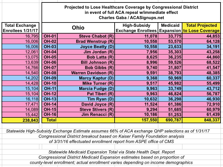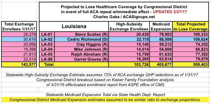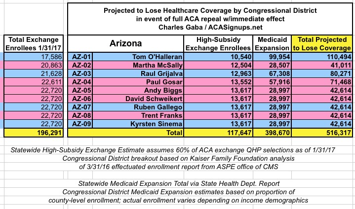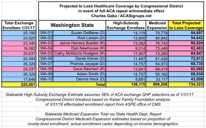 MAJOR UPDATE 3/22/17: As I've noted repeatedly, my estimates of how many people are at risk of losing their coverage has always been based on the assumption of full repeal with immediate effect and, most importantly, no replacement healthcare policy whatsoever. I had to do it this way at first because there was no Republican replacement plan available until a couple of weeks ago. Then, when the AHCA plan was released, I didn't have the time or expertise to properly overhaul my projections accordingly.