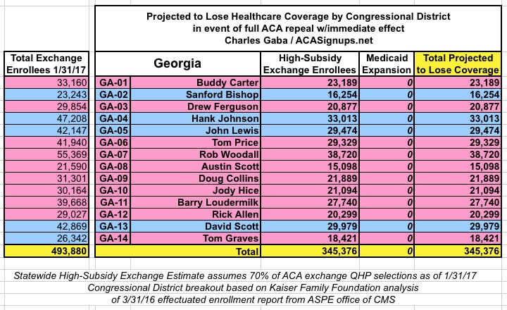 • UPDATE 2/19/17: HAWAII AND IDAHO now added. (After weeks of having to track down the individual congressional districts by rolling over the appropriate part of the map--which wasn't easy in many districts due to gerrymandering--it looks like the KFF has added the actual raw source data, making it much easier to finish up the remaining states!)