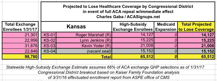 In addition, the KFF analysis doesn't include Medicaid expansion enrollees in those zip codes/Congressional Districts, so it's much easier to run estimates for the states which didn't expand Medicaid under the ACA (plus states with only a single district, duh!)