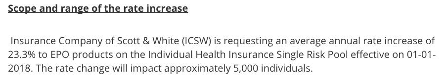 With those caveats in mind, it looks like the Lonestar State is seeking 20.2% average unsubsidized rate hikes if CSR payments are made, or 32.5% increases if they aren't: