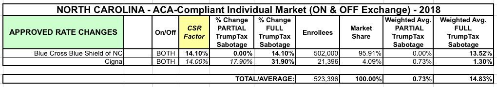 UPDATE: North Carolina: BCBSNC confirms 14.1% avg. rate hikes; NEARLY ALL due specifically to CSR sabotage