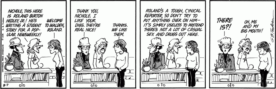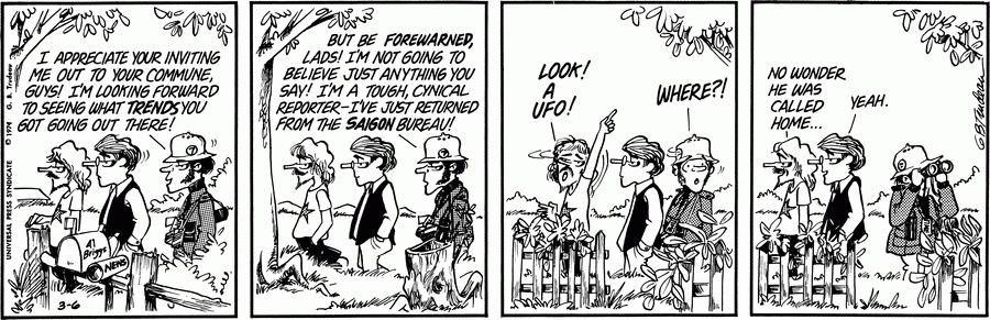 Don't get me wrong, some of the other quotes appear to be from people who are legitimately happy with the extra cash, so I can't rip on the reporter herself too much, but in the case of Ms. Ketchum, at least, it definitely sounds like she and Mr. Ryan have been taken in by something which is more commonly referred to as "yanking their chain" or "messing with their heads". I'm reminded of an old Doonesbury series: