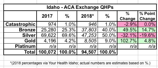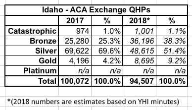 Idaho is one of only 2 state-based exchanges which stuck with the "official" December 15th deadline for the 2018 Open Enrollment Period (the other was Vermont). Unfortunately, they haven't released an official, detailed demographic breakout report yet, but they did discuss some relevant stats in their December board meeting...which, as it happens, took place on December 15th, which means it's still missing a bit of final data. For now this is the best I can do: