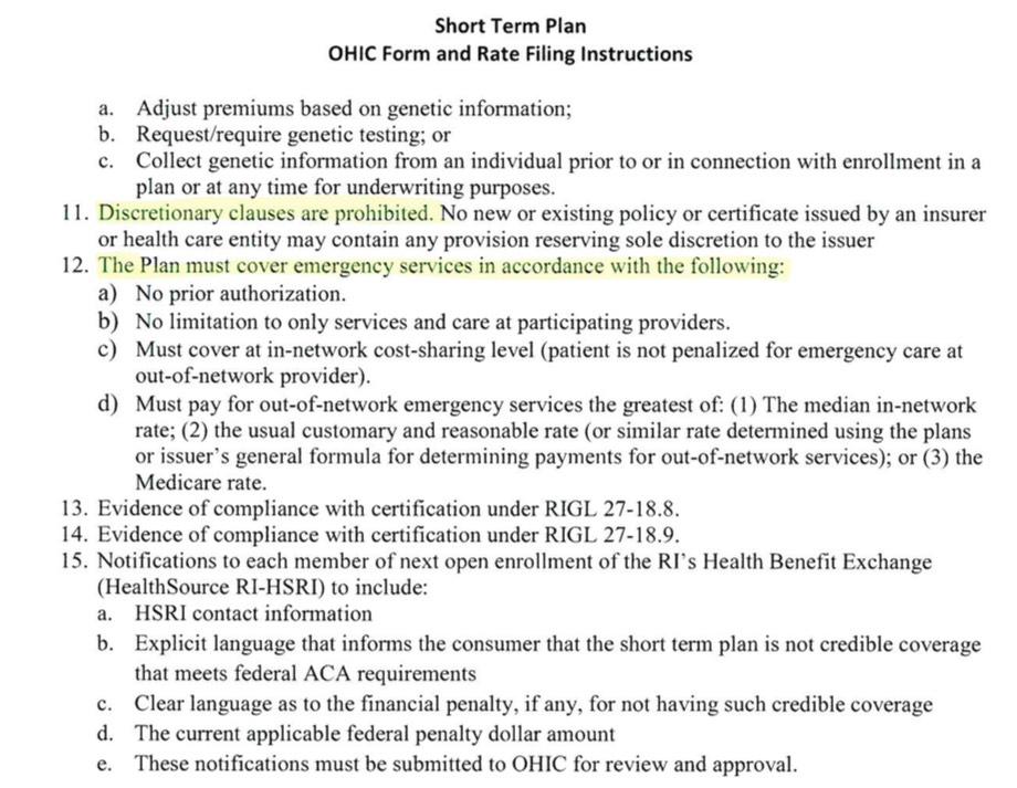 OK, so some of these requirements already apply, some...don't? In any event, the fact remains that STLD plans are allowed in Rhode Island but there doesn't appear to be much point in anyone buying them (which is fine with me). The main point is that neither BCBS nor Neighborhood seem to think they'll have more than a nominal impact next year even with Trump's executive order.
