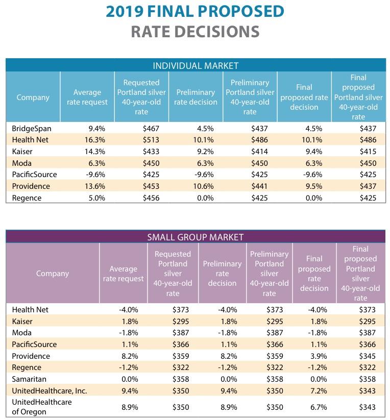 I noted a few weeks ago that the Oregon Division of Financial Regulation had issued their preliminary rulings on 2019 individual and small group market rate filings. At the time, they had whittled down the average requested indy market rate changes from 10.5% down to 7.8%, while leaving the requested small group rate changes the same (around 5-6% on average).