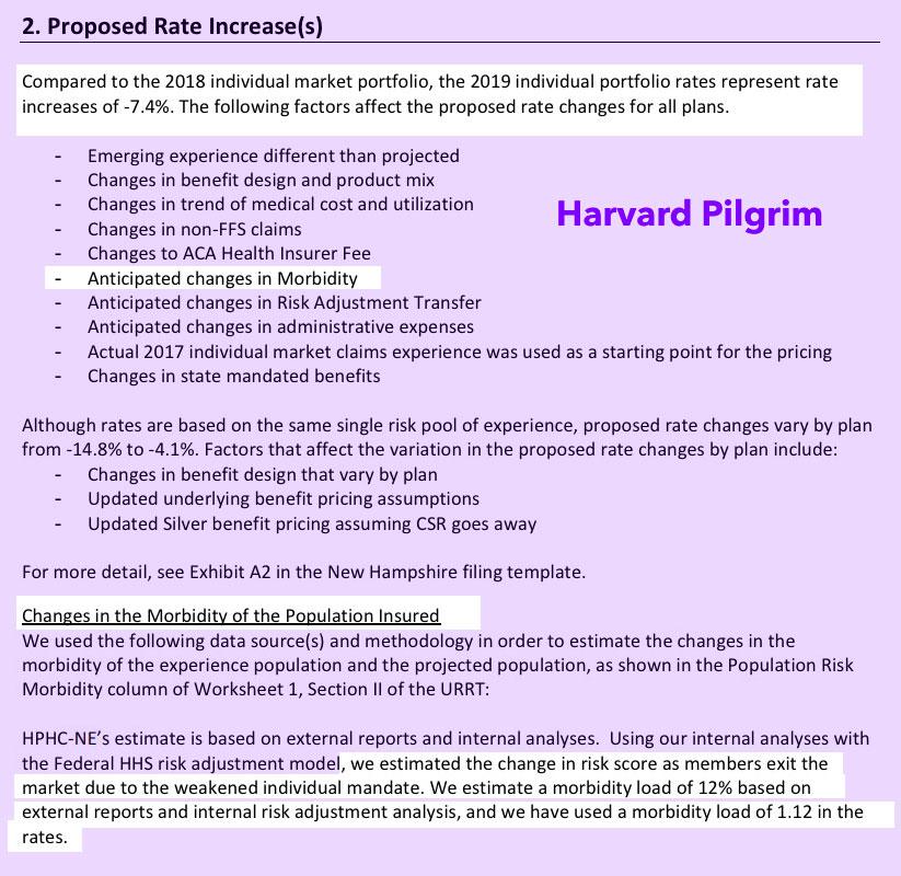 - 2019 rates are increasing by 12% due to morbidity changes...which are based specifically on the adverse selection impact of the individual mandate being repealed.