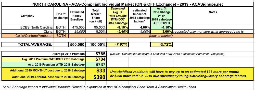 North Carolina: APPROVED 2019 rate change: 3.7% drop..but WOULD have dropped 8.0% w/out #ACASabotage