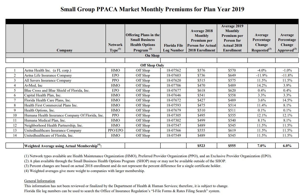 FLOIR also provided the small business rate increases, which are, interestingly, going up more on average than the individual market, which isn't something you see very often. In fact, Florida individual market plans are expected to only average around 14% more than small group plans next year.