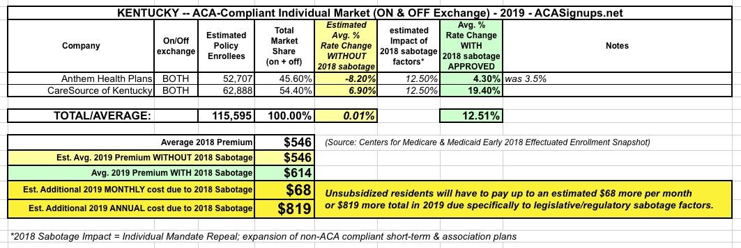 Kentucky: APPROVED 2019 #ACA rate hikes: ~12.5%, but WOULD likely be FLAT w/out #ACASabotage