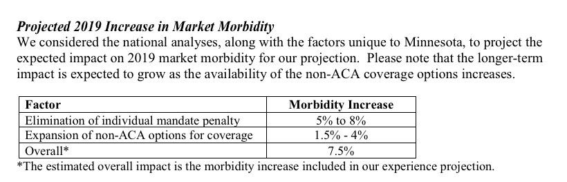 Minnesota, currently entering their second year of their official reinsurance waiver program to help keep unsubsidized premiums down, announced their preliminary 2019 rate hikes way back in June. At the time, the carriers were looking at roughly an 8% average reduction in rates next year...although they would be dropping prices by more like 15% if not for the ACA's individual mandate being repealed and the expansion of #ShortAssPlans.
