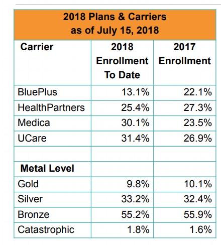 For the other four carriers, I didn't see hard enrollment numbers in their filings, but the July MNsure Board of Directors Slide Deck breaks out the relative market share of each by percentage, which gives me a pretty good idea. PreferredOne isn't included since it's off-exchange only, but again, with just 300 enrollees it doesn't move the needle anyway.