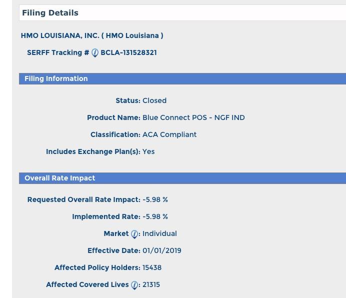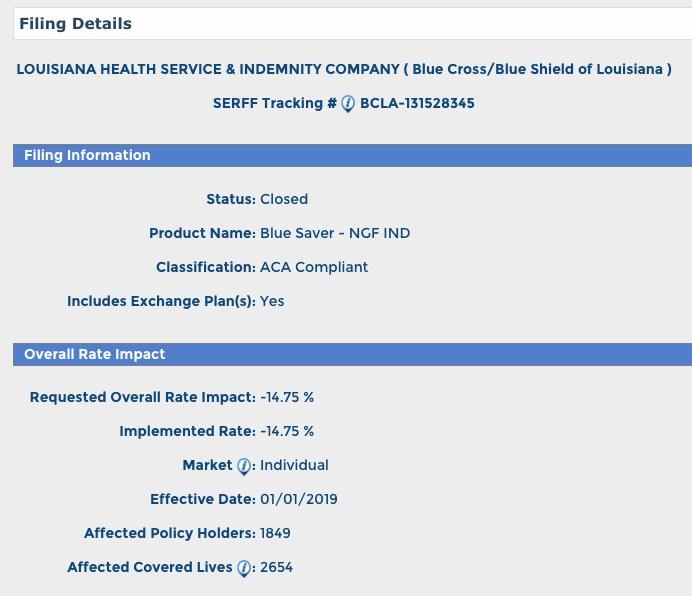 There was practically no change whatsoever between the rate changes requested by Louisiana carriers for the 2019 ACA individual market and the rates approved by the state insurance regulators. However, it's still good to be able to lock in the official rates just ahead of the Open Enrollment Period itself, including the individual filing data.