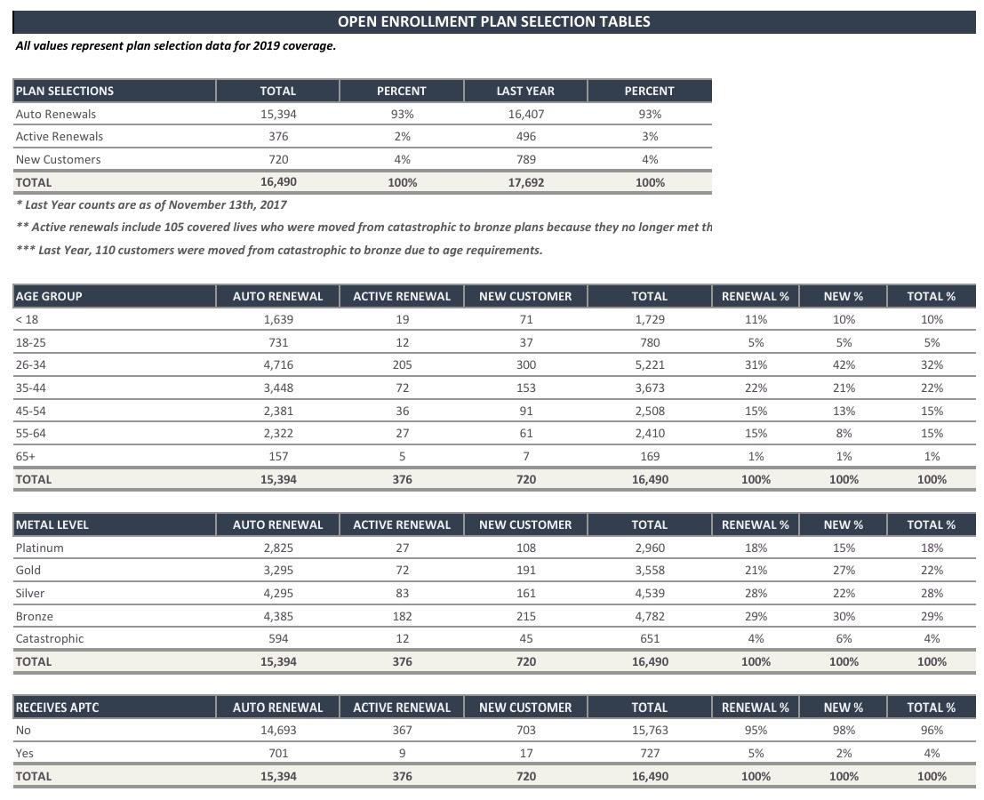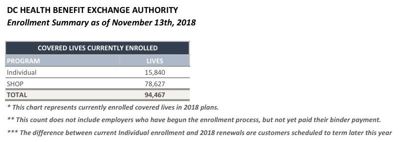 The numbers are several weeks out of date, but it's better than nothing: Here's the DC Health Link's official 2019 ACA Open Enrollment report through November 13.