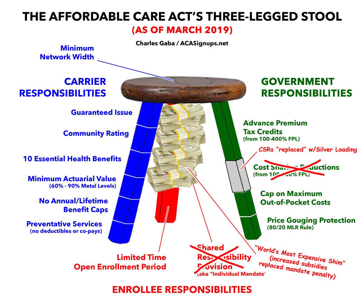 One more time: Here's what the ACA's "3-Legged Stool" looks like as of March 2019. The Trump Administration and Congressional Republicans tried to sabotage the Green Leg by cutting off Cost Sharing Reduction reimbursement payments...but the insurance carriers mostly cancelled this out by Silver Loading. The end result of this is that the federal government is actually shelling out up to $20 billion more in APTC subsidies per year, more than cancelling out the $10 billion or so they're saving in unpaid CSR costs (and they may still have to pay that as well anyway!)