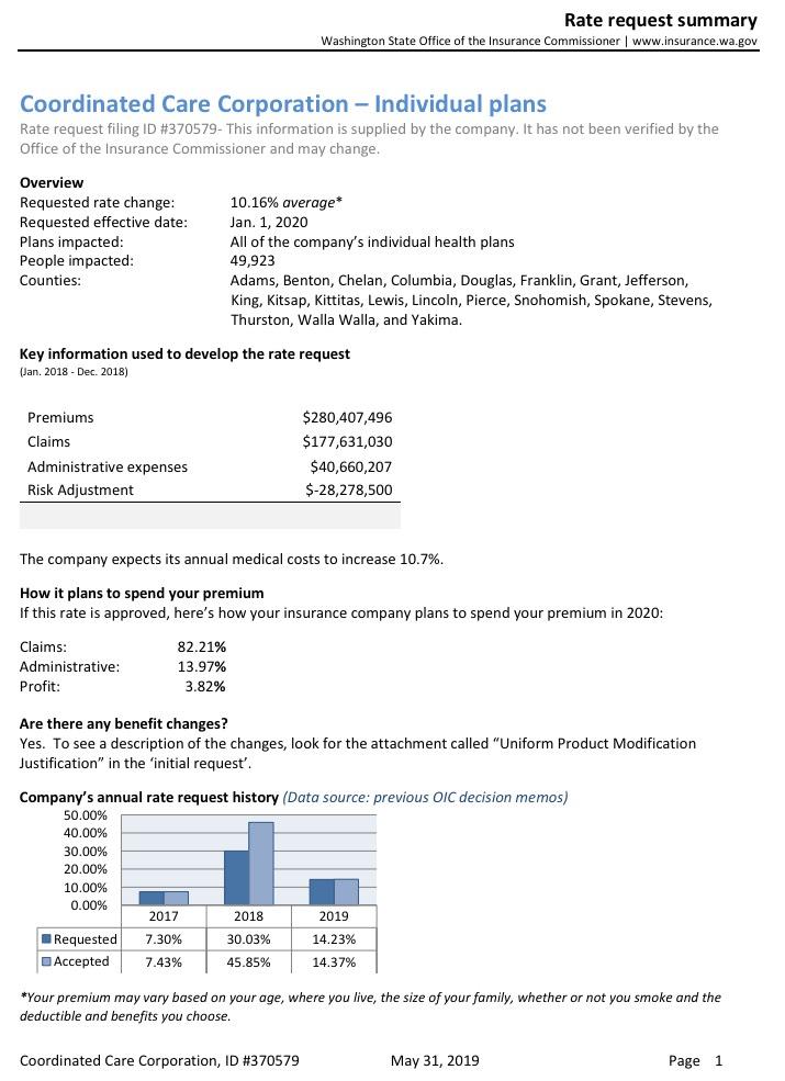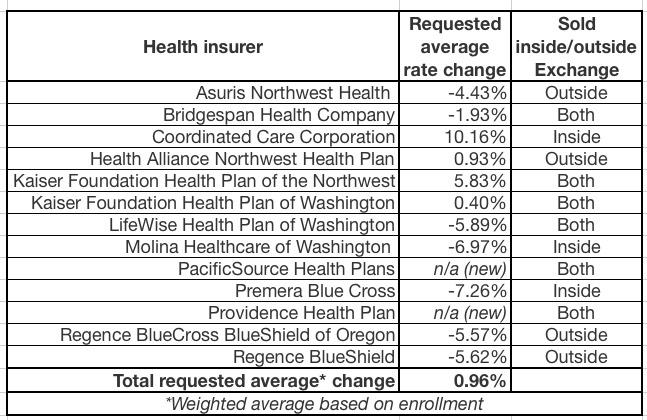 In any event, the nominal ~1% average rate increase (it ranges from a 7.3% reduction to a 10.2% increase by carrier) means unsubsidized Washingtonians will only be paying around $8/month more on average next year.