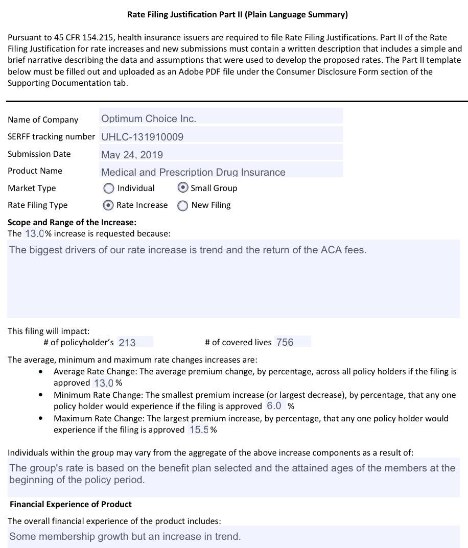Oddly, when I plug in the hard numbers directly off of the actual filings, while the requested rate change percentages are the same as above, the weighted averages are somewhat different in both categories: