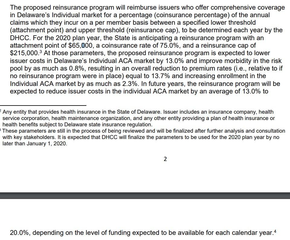 It is important to note, that the proposed rate decrease is unrelated to Delaware’s intended submission of a 1332 Waiver to establish a reinsurance program. If the application process is successful, the actuarial consultant’s projections are correct, and the State of Delaware secures adequate funding, the waiver program may decrease rates by an additional 20%.