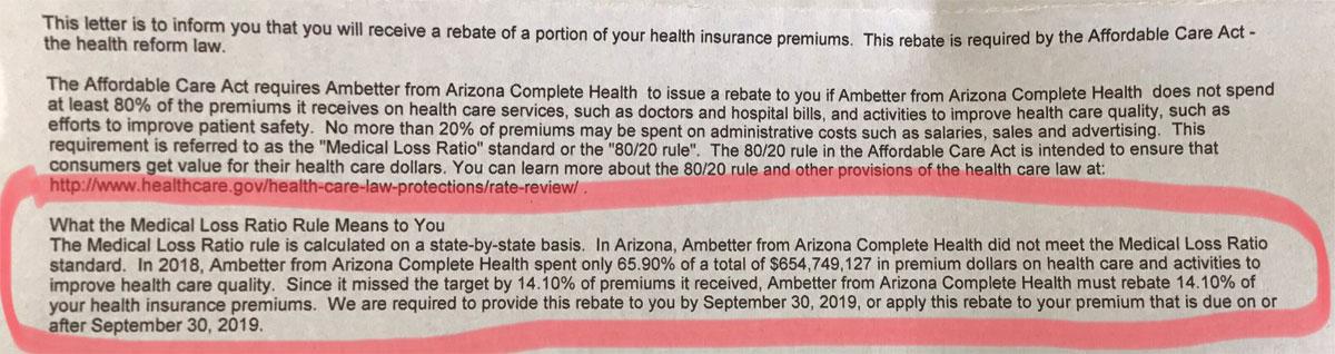 Got a 14% rebate from Ambetter of Arizona today. https://t.co/YThphyr3Kv