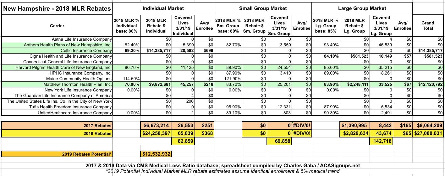 New Hampshire: 65,000 ACA enrollees to receive over $24 million in MLR rebate payments