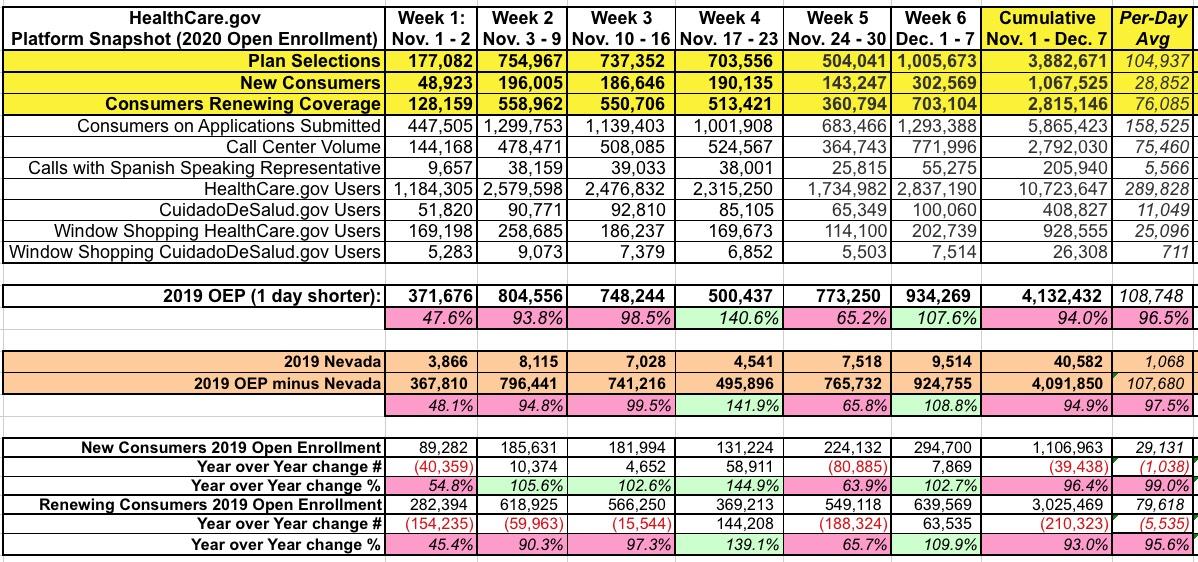 All three of these factors still leave 2020 Open Enrollment around 170,000 short of the same time period last year on HealthCare.Gov through the end of November.