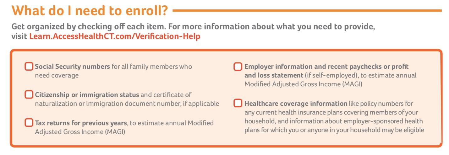 - To help the enrollment process, Access Health CT is sharing information about the documents needed to successfully enroll during this time.