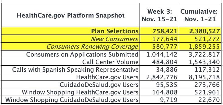 2021 OEP Week 3 HC.gov Snapshot Report: 758K QHPs; 2.38 million total