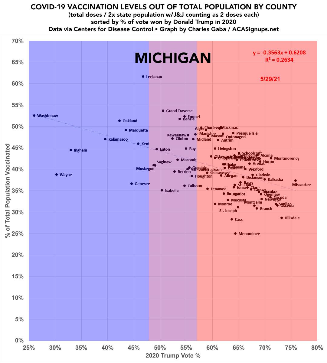 UPDATE: Michigan: #COVID19 vaccination rates by county & partisan lean