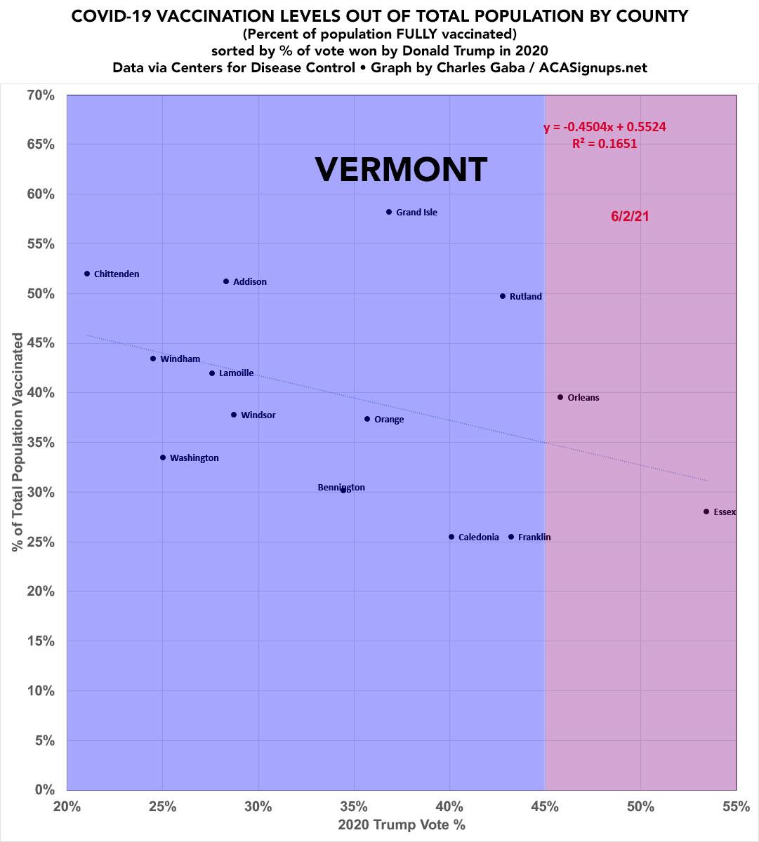 Vermont: #COVID19 vaccination rates by county & partisan lean
