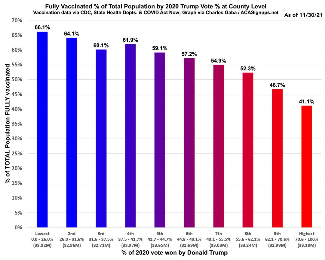 Weekly Update: U.S. #COVID19 vaccination levels by COUNTY & Partisan Lean