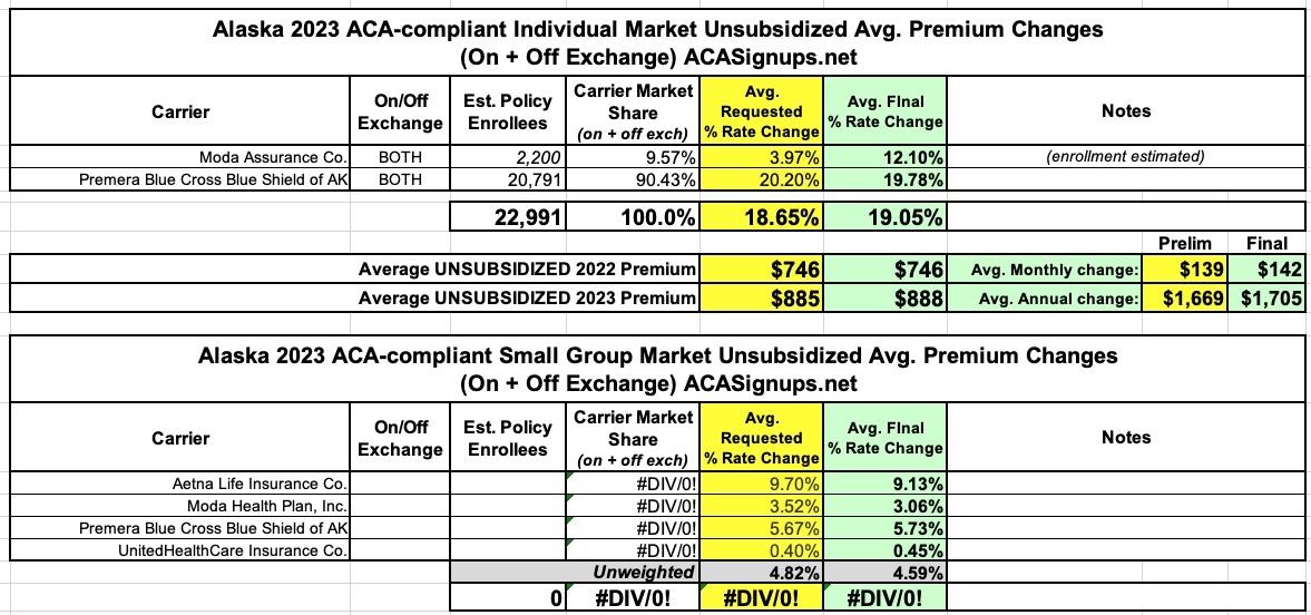 Alaska: Final avg. unsubsidized 2023 #ACA rate changes: +19.1%