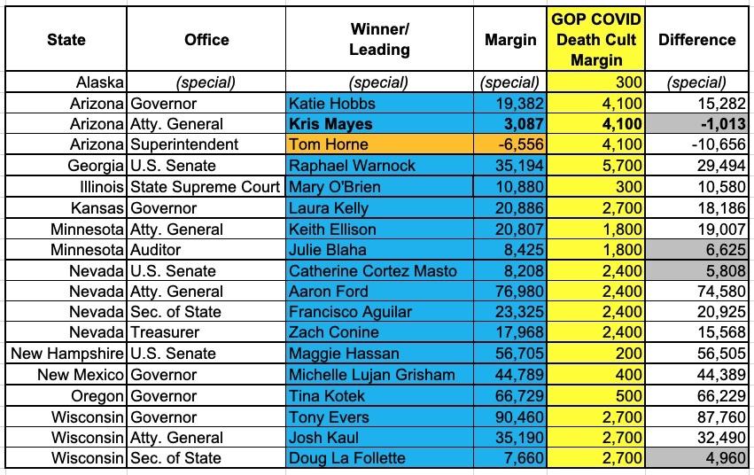 UPDATE: Elephant in the Room Redux: The GOP's COVID Death Cult made the difference in exactly one statewide race.