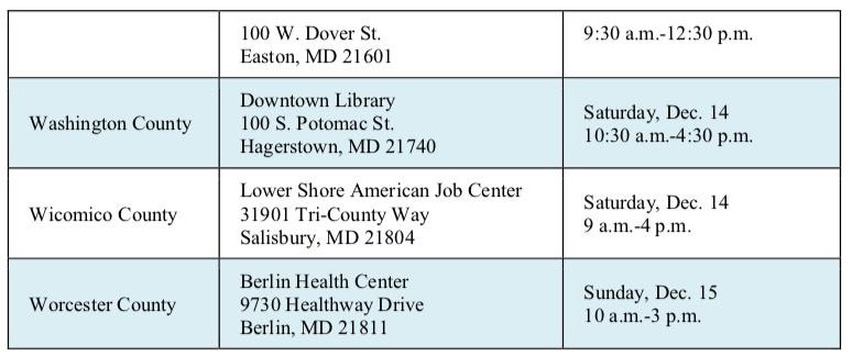 Maryland Health Connection will hold nearly 20 “Last Chance” events throughout the state during the final week of open enrollment Dec. 7-15 to provide free help enrolling in health coverage. Marylanders can enroll in health and dental coverage until Dec. 15 through Maryland Health Connection, the state’s health insurance marketplace.