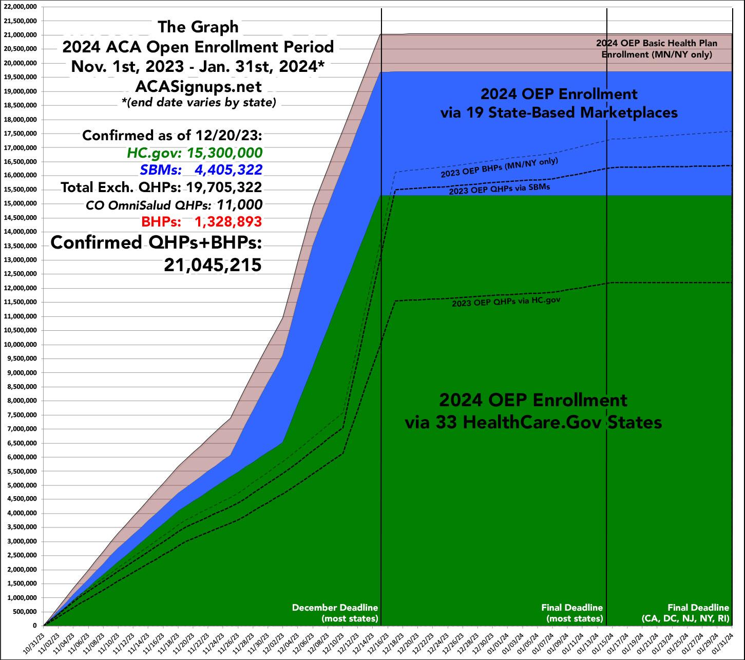 Well, last year, nationally, 15,508,346 had selected QHPs as of December 17th. FInal 2023 OEP enrollment ended up being 16,357,030 people, which means 5.2% of the grand total signed up after 12/17.
