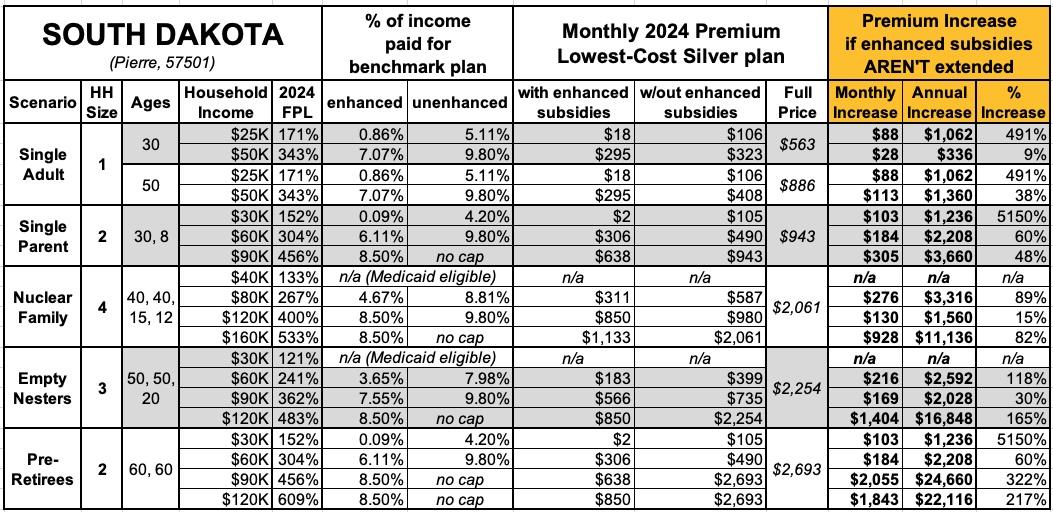 State by State: How much more will YOU pay if the enhanced ACA subsidies aren't extended? (South Dakota - Vermont)